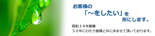 弊社はこの地に昭和39年創業、お陰様をもちまして50年にわたり、皆様と共に歩んでまいりました。小修繕工事から、内外装を含む大規模改修工事、新築工事から、各種リフォーム工事まで、トータルに対応しております。創業以来からお付き合いいただいているお客様を大切に、リフォームやメンテナンスを多くさせていただいております。